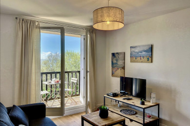 Located close to Deauville, on the heights of Blonville-sur-Mer, this beautiful apartment in a private residence planted with trees is ideal for a stay for two or a couple on the Normandy coast.