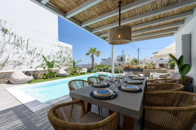 Stay in this spacious luxury villa of 195m² in Ambelas, in the Naoussa region on the island of Paros, offering breathtaking views of the Aegean Sea. Sleeping up to 9 people, it's ideal for vacations with family or friends in a peaceful, refined setting.