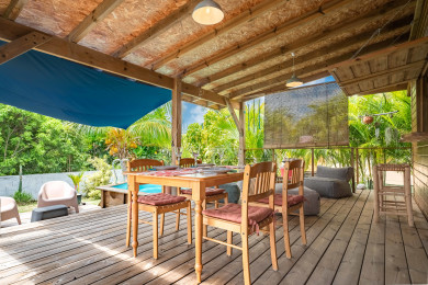 Villa Ekinos embodies the typical charm of Guadeloupe, offering a warm and welcoming living space for up to four people. Its 70m2 ground floor houses two air-conditioned bedrooms, one with a 160cm double bed and the other with two 90x200cm single beds, sharing a bathroom. The fully-equipped kitchen and convivial living room open onto an outdoor terrace overlooking the pool, ideal for al fresco dining and relaxing in the Caribbean sunshine.