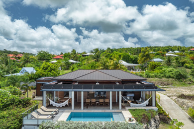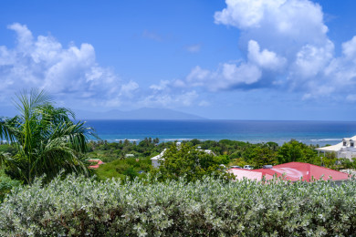 The private swimming pool, surrounded by a deck terrace, is ideal for cooling off and relaxing under the sun. You will enjoy a panoramic view of Dominica and the Saintes, and unforgettable sunsets.