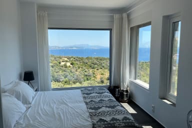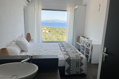 With 160 m² of living space and 2700 m² of landscaped grounds, Villa Arkoudi offers a unique retreat providing ample space for relaxation and accommodation for up to 8 guests. With four bedrooms, each offering sea views and ensuite facilities, the villa is perfectly organized with plenty of room to unwind and enjoy the stunning surroundings.