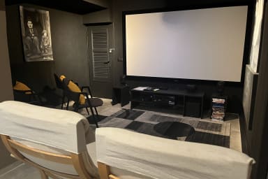 Cinema Room: Enjoy a cinematic experience in the dedicated cinema room, featuring a Lumene 240c projection screen (2.5m width x 1.5m height) and a Sony VPL WV projector with a Blu-ray DVD player and extensive DVD library —perfect for movie nights for all the family.