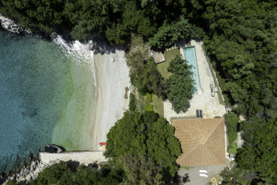 Amazing seafront Villa Trianda located just above a small pebble beach, surrounded by dense vegetation and emerald waters, while offering unique views