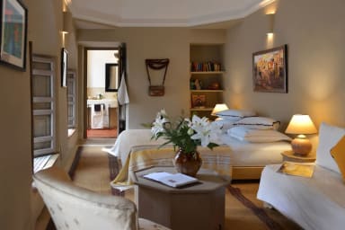Ideally located in the heart of the Marrakech medina, the riad is close to the souks, traditional restaurants, and iconic monuments such as Jemaa el-Fna Square and the Koutoubia Mosque. You will also find recommended addresses and brochures in the riad to enhance your stay.