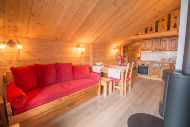 In the resort center, this apartment is very cosy and comfortable for 4 people ! Quite close to the slope (100m to the tourisme office access). Wifi.