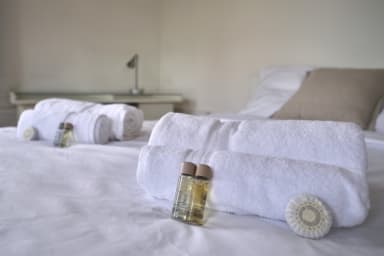 → Before your arrival and after your departure, our team will clean the property to hotel standards and provide you with hotel-quality bath towels, bed linen, and a range of natural care products.