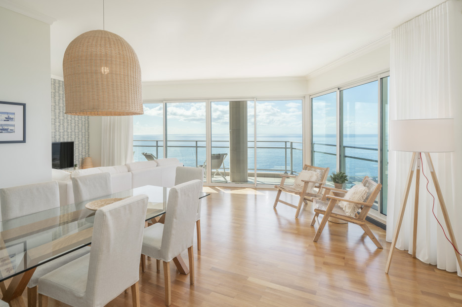 This apartment is ideal for those looking to spend a season in an accommodation located in an area accessible to beaches, restaurants and shopping! It is especially advantageous as it is close to the promenade, public parks, transport, bars, etc. and also offers incredible views over the Atlantic Ocean. With a living room that has a living area and a dining area, three bedrooms, two bathrooms, this accommodation can accommodate a maximum of 6 people. The balcony is common to the living room and one of the bedrooms. It has a solarium area and a dining area, where you can enjoy a nice breakfast or lunch outdoors, contemplate the blue sky and the sea, read a book or simply sunbathe. The kitchen is fully equipped and also has a dining area, so this property has everything you need to enjoy a beautiful vacation.