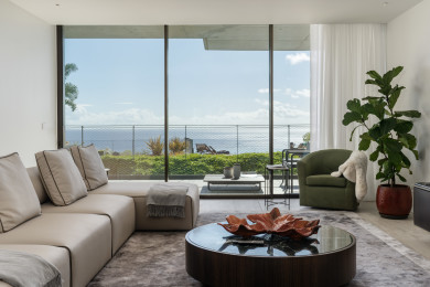 The social area includes a fully equipped kitchen that opens into the living and dining room, creating a welcoming space for socializing, enjoying meals together, or unwinding after a day of exploring. The living room and one of the suites have access to a shared balcony, perfect for taking in the sea view and enjoying Madeira’s mild climate.
