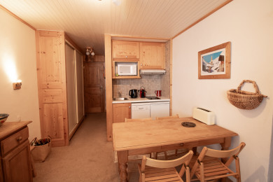 Ideally located in the heart of Val d’Isère and just 500 m from the slopes, this cosy, practical apartment for up to 4 guests includes: