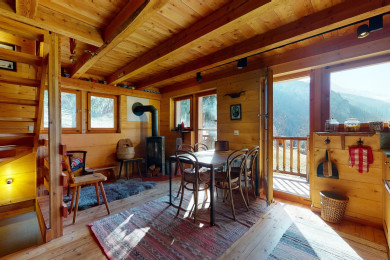 Surrounded by a large private plot of land and located just above the village, the chalet is close to all restaurants, stores and bars.