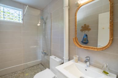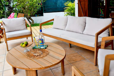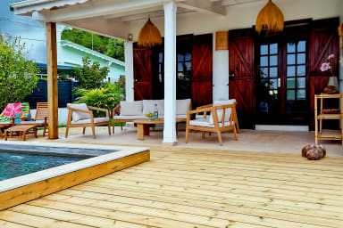 The villa is located in Grand Bourg, on the picturesque island of Marie Galante. Just a 5-minute drive away, discover the heart of Grand Bourg with its shops and local markets. In less than 5 minutes on foot, you can reach the white sandy beaches, ideal for swimming and sunbathing. Explore the island by car to discover its renowned distilleries and breathtaking landscapes. Take advantage of the ideal location of the villa during the Terres de Blues festival.