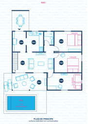Renovated villa with private pool and two inviting terraces. Just a 5-minute walk from the beach and close to all amenities. Perfect for families of up to 8 people, thanks to its 4 comfortable, air-conditioned bedrooms.