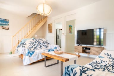 Discover the gentle way of life at Villa Bleue Papaye, a jewel nestled in Grand Bourg, Marie Galante. This completely renovated villa will seduce you from the moment you arrive with its Creole charm and bright spaces. Enjoy a private swimming pool, ideal for cooling off in the tropical sunshine. Its ideal location means you can walk to the beach in just a few minutes or enjoy lunch in one of the nearby restaurants.