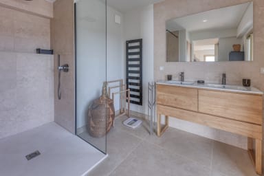 → Before your arrival and after your departure, our team performs hotel-quality housekeeping and provides you with hotel-quality towels, bed linen and a line of natural skincare products.