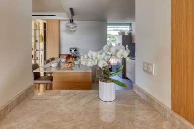 Enjoy the luxurious comfort of this elegant penthouse located on the fourth floor with elevator. Enjoy two beautiful 300 m² terraces spread over two floors, equipped with a large table, garden furniture and relaxation areas, as well as an unheated cooling pool.