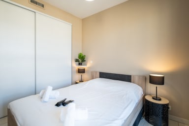 Antibes is a vibrant and picturesque town, ideal for discovering the Côte d'Azur. Close to the beaches and downtown Juan-les-Pins, this apartment offers easy access to a wide range of activities. Explore the charming alleyways, enjoy the local markets, and discover fine restaurants offering exquisite Mediterranean cuisine. La Pinède beach is just a few steps away, as is the train station and all the amenities you need for a pleasant stay.