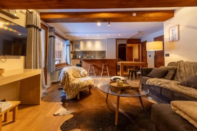 A unique two-level apartment (split over one floor) in Méribel Plateau, at the entrance to the Route des Chalets and a 2-minute walk from the slopes. One bedroom and one full bathroom are completely independent.