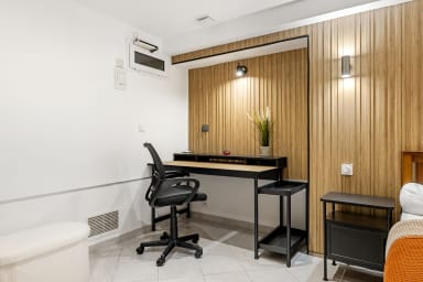 - a souplex bedroom with 180 cm kingsize bed and work desk,