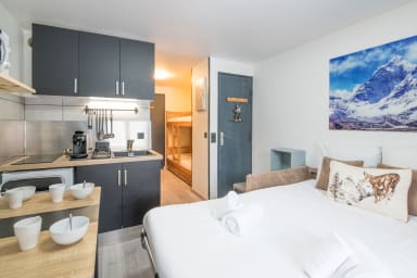 Stay in this cozy, welcoming studio in Demi-Quartier, where you can enjoy spectacular views of the mountains and fir trees. Ideal for a relaxing mountain break, this 18 m² studio can accommodate up to 3 or 4 people.