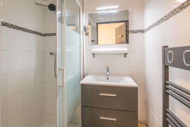 This 18 m² studio on the garden level can accommodate up to 3 people. It features :