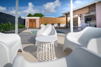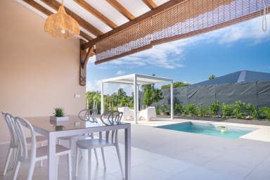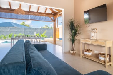 Private swimming pool, peaceful setting with no overlooking neighbors, just a few minutes from the famous Raisins Clairs beach. Perfect for 4 guests with its 2 air-conditioned bedrooms in an intimate atmosphere.
