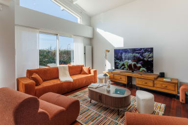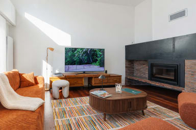 - a large and comfortable living room with a dining area,