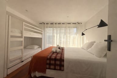 - a fourth bedroom with one double bed and one bunk bed,