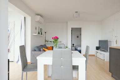 - air conditioning in the living room and bedroom, radiators, smoke detector, hangers,