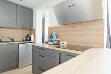 - a fully equipped kitchen (coffee machine, toaster, kettle, oven, microwave, hob, dishwasher, refrigerator, freezer),