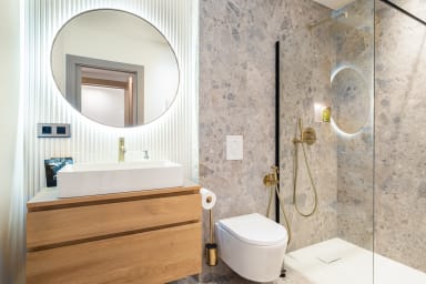 - three bathrooms, two with shower and WC, and one with shower and bathtub,