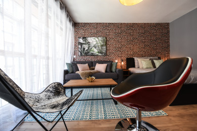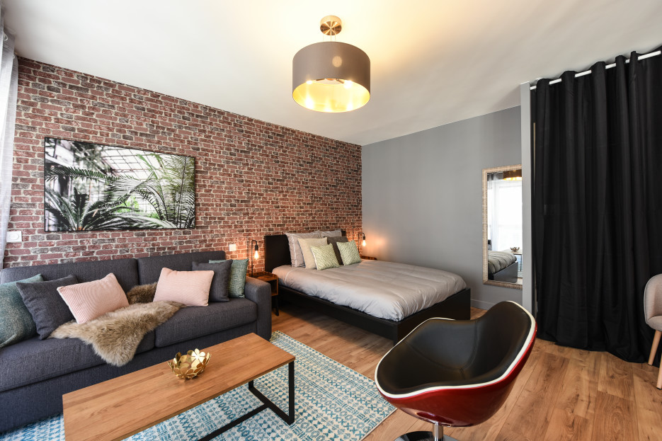 - un espace de vie lumineux avec lit double et canapé-lit confortable,