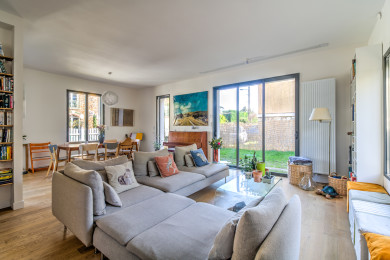 - un grand espace de vie ouvert et très lumineux comprenant un salon et un espace salle à manger,
