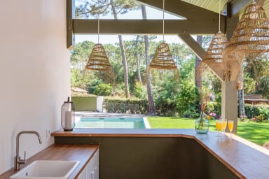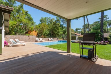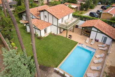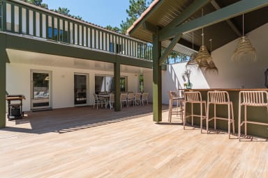 Profitez de cette magnifique villa de 270 m² à Seignosse idéalement située entre lac d’Hossegor, océan et golfs prestigieux de la région. Sur son terrain de 1100 m², son jardin paysagé et sa piscine privative, c'est le lieu idéal pour un séjour en famille ou entre amis, jusqu'à 12 personnes.