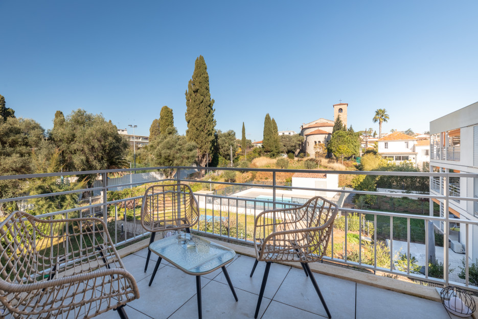 - un balcon de 6 m² avec coin détente et vue sur la piscine de la résidence,