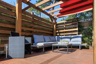 - un jardin privé de 100 m² avec terrasse, grande table, salon de jardin, transats,