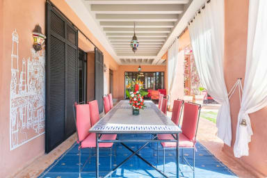 Échappez au quotidien en franchissant les portes de la somptueuse villa Koutoubya, entourée de palmiers et d'oliviers. La Villa dispose de cinq grandes chambres sur ses 170m² de surface, toutes équipées d'une salle de bains privative, pouvant accueillir jusqu'à 14 personnes.
