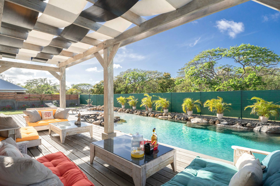 Magnifique architecture au charme créole. Piscine unique bordée de pierres de rivière. A 3 km des plages, des commerces et de la marina.