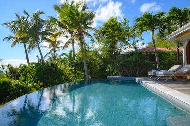 Le cœur de la villa présente un espace lumineux et convivial : une cuisine parfaitement équipée s’ouvrant sur une salle à manger élégante et un salon confortable. Depuis la pièce à vivre, accédez directement à la terrasse et laissez-vous séduire par la piscine à débordement offrant une vue spectaculaire sur la mer des Caraïbes. Détente au soleil ou repos à l’ombre, tout est conçu pour votre bien-être au centre d’un intime écrin de verdure.