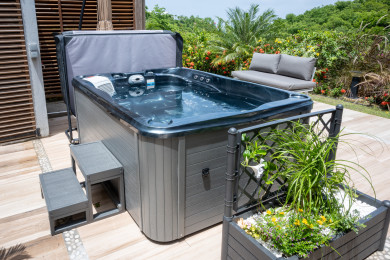 Élégante villa offrant bungalow tout confort avec jacuzzi, idéale pour voyageurs en quête de détente et d'évasion.