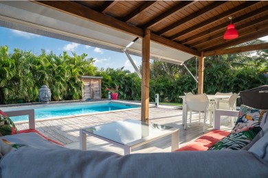Imprégnez-vous de l'ambiance caribéenne à la française en savourant le calme de la piscine privée, nichée dans un jardin luxuriant. La cuisine américaine moderne, équipée d'un double bar et d'un cellier, vous invite à des moments de convivialité.