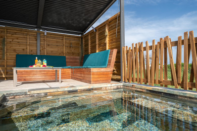 Dès votre entrée, vous serez captivés par l’ambiance apaisante du carbet bio climatique. La chambre de vie s'ouvre largement sur un extérieur enchanteur où vous attend une piscine bac à punch entourée d'un magnifique deck en Ipé. Le tout se fond harmonieusement dans un cadre calme et ventilé, idéal pour se ressourcer au soleil des tropiques.