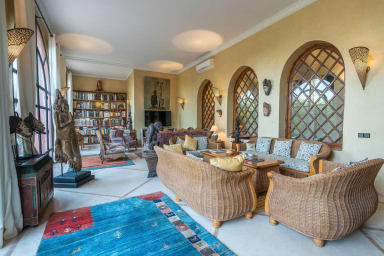 Situé à seulement 22 km du centre animé de Marrakech, le Palais Mauresque vous accueille dans un cadre somptueux de 1 700 m², avec une vue panoramique sur les montagnes de l’Atlas.
