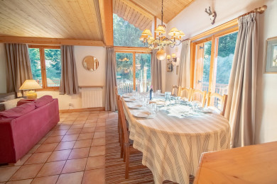 Ce magnifique chalet est idéal pour des vacances en famille. Entièrement construit en bois, vous apprécierez les pièces spacieuses et la belle luminosité qui règne à l'intérieur. Le grand salon avec sa cheminée constitue l'endroit parfait pour se détendre après une journée de ski. L'espace abondant autour du chalet, accompagné d'arbres offrant une intimité appréciable, crée une atmosphère accueillante. Le chalet est conçu pour accueillir confortablement 8 personnes, mais peut aisément accueillir jusqu'à 11 personnes.