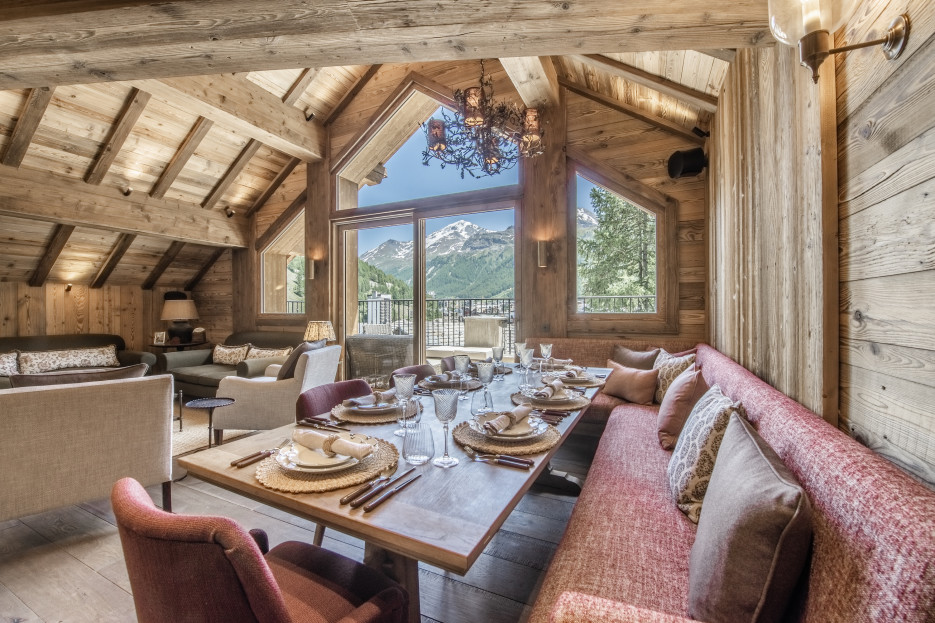 Ce superbe appartement de quatre chambres combine à la perfection le charme traditionnel alpin et le raffinement du luxe contemporain.