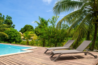 Bienvenue à la Villa Le Maroni, votre retraite parfaite au cœur de la luxuriante nature de Guadeloupe. Cette villa de plain-pied, d'une superficie de 110 m², vous offre tout le confort d'un foyer tout en condamnant à l'évasion. La villa dispose de quatre chambres confortables, dotées de lits généreux pour accueillir jusqu'à 6 adultes et 4 enfants. 3 chambres disposent d'un lit 160cm, tandis que la 4ème chambre dispose d'un lit superposé et d'un lit tiroir pouvant accueillir jusqu'à 4 enfants. Dans cet écrin de verdure, détendez-vous au bord de la piscine privative offrant une intimité totale, idéalement placée pour profiter des journées ensoleillées où vous pourrez apercevoir la Soufrière ou des soirées sous les étoiles. Son coin cuisine extérieur avec un barbecue à gaz et une plancha est idéal pour profiter de la piscine.