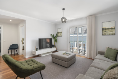 Appartement moderne et bien décoré de deux chambres à coucher avec balcon, espace de vie et vue sur la place locale, pour des vacances sur l'île de Madère. Situé dans le centre-ville de Santa Cruz, à proximité de l'aéroport, à quelques minutes à pied de la plage, des restaurants, des boulangeries et d'autres services essentiels.