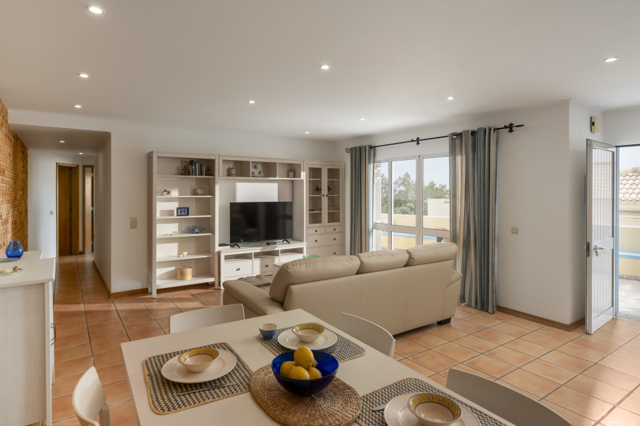 Depuis le salon, vous trouverez également une généreuse terrasse extérieure avec une table où vous pourrez profiter de moments de partage avec vos amis et votre famille.