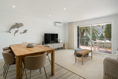 Le salon et la salle à manger ouverts ont un accès direct au balcon, qui est partagé avec la suite. Le balcon dispose d'une table à manger extérieure et d'un coin salon - parfait pour se détendre dans le climat doux de Madère.