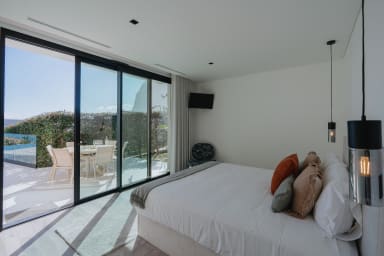 Villa de plain-pied de 3 chambres, comprenant une suite avec lit double, une chambre avec lit double et une chambre avec deux lits simples. Elle dispose d'une salle de bains avec douche, d'un WC supplémentaire, d'une cuisine entièrement équipée, d'une salle à manger et d'un salon, d'une buanderie, d'une piscine, d'un barbecue, d'un parking privé et d'une vue imprenable sur la mer.