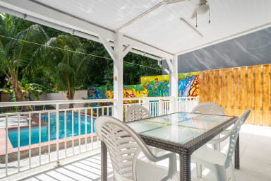 Villa au cœur de Port-Louis. Jardin tropical avec piscine privative, à seulement 5 minutes des plages. Accueille jusqu'à 9 personnes, avec 4 chambres confortables.